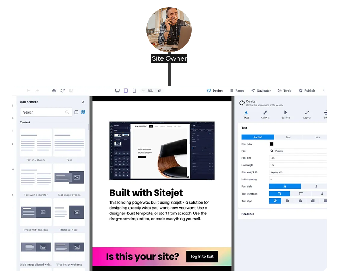 AI Sitejet drag and drop website builder makes it easy to create a powerful, professional website without any technical skills. Speed up your design and management time, and grow your business like never before.